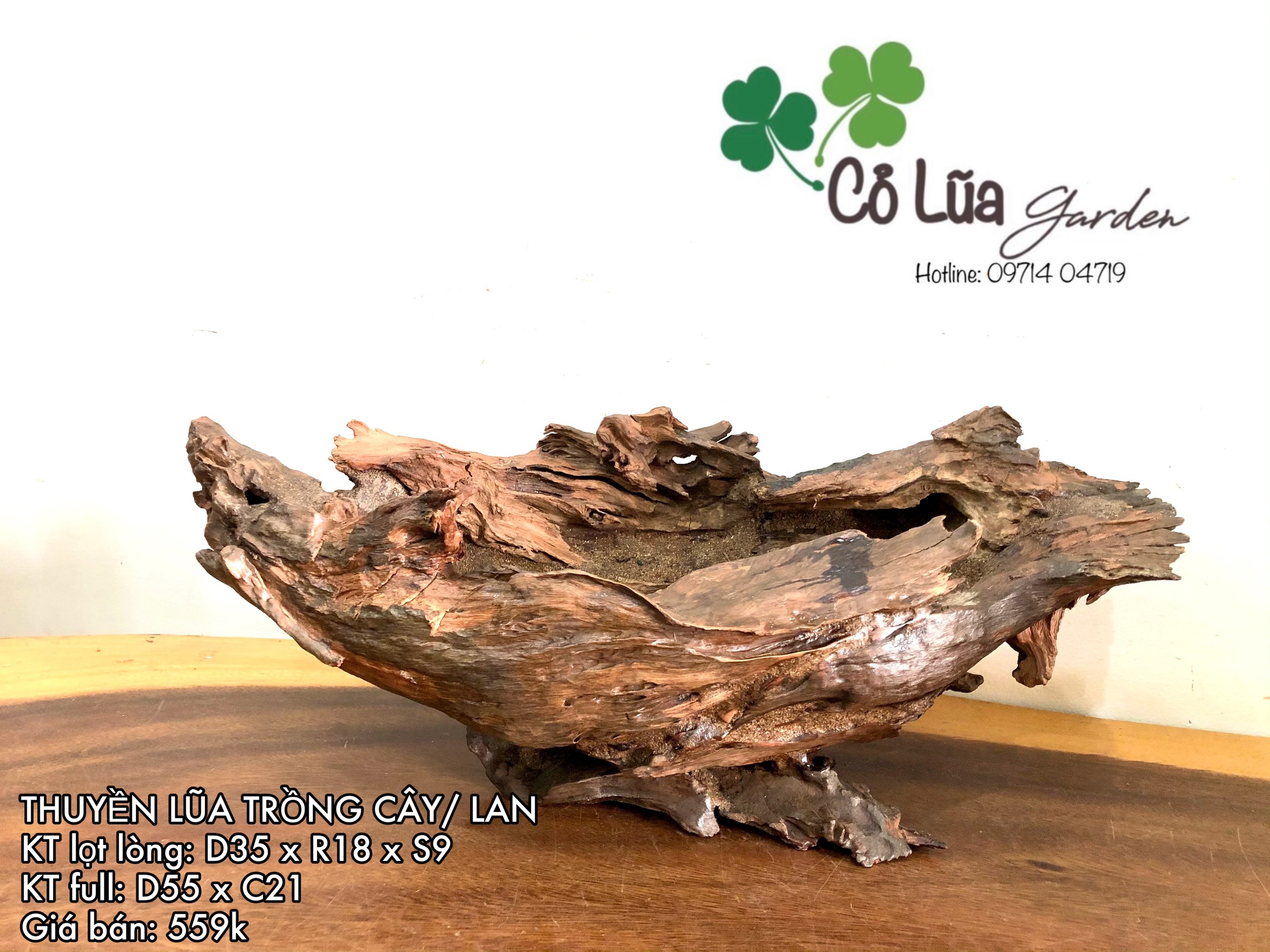 chậu trồng cây bằng gỗ lũa
