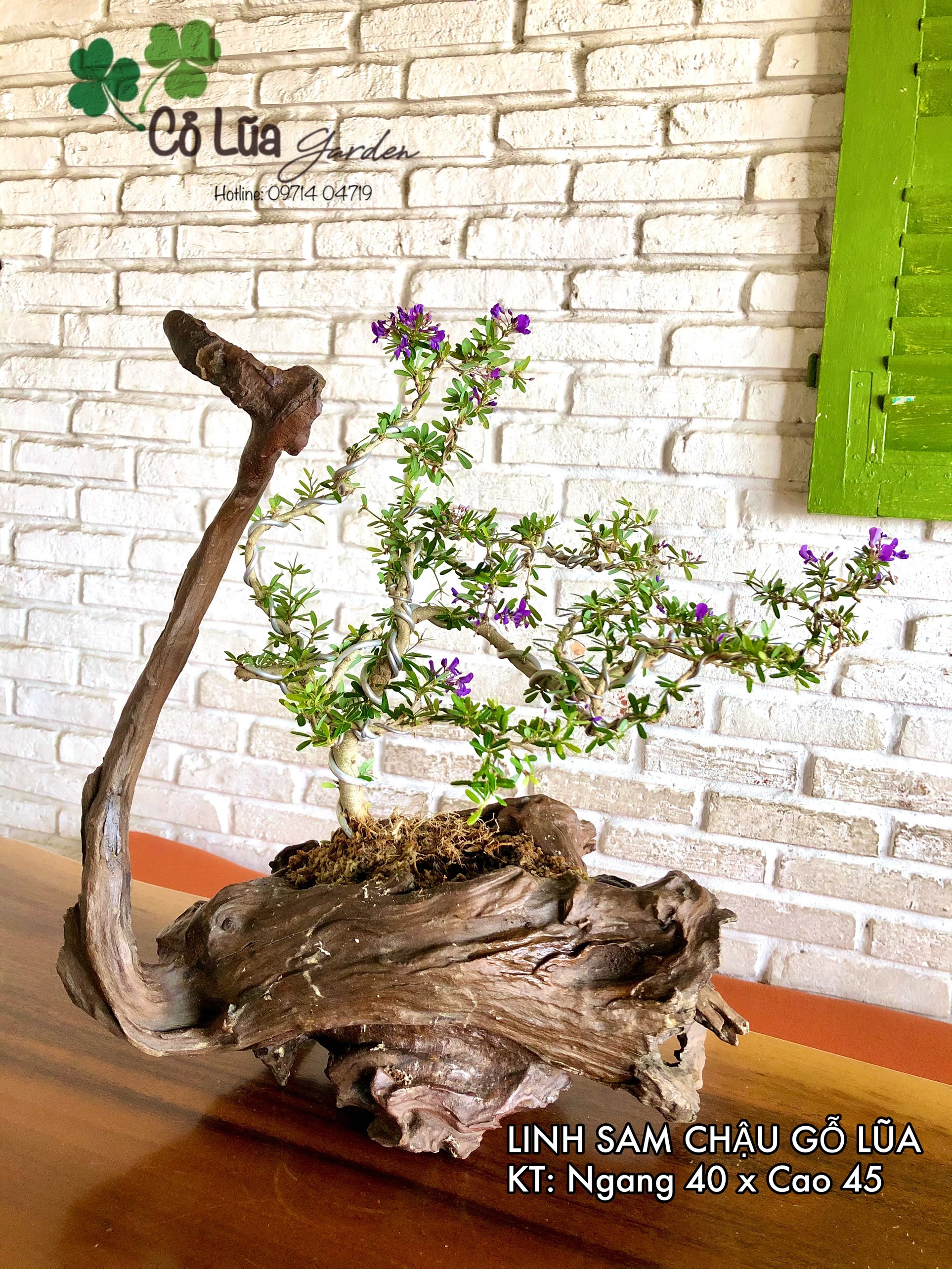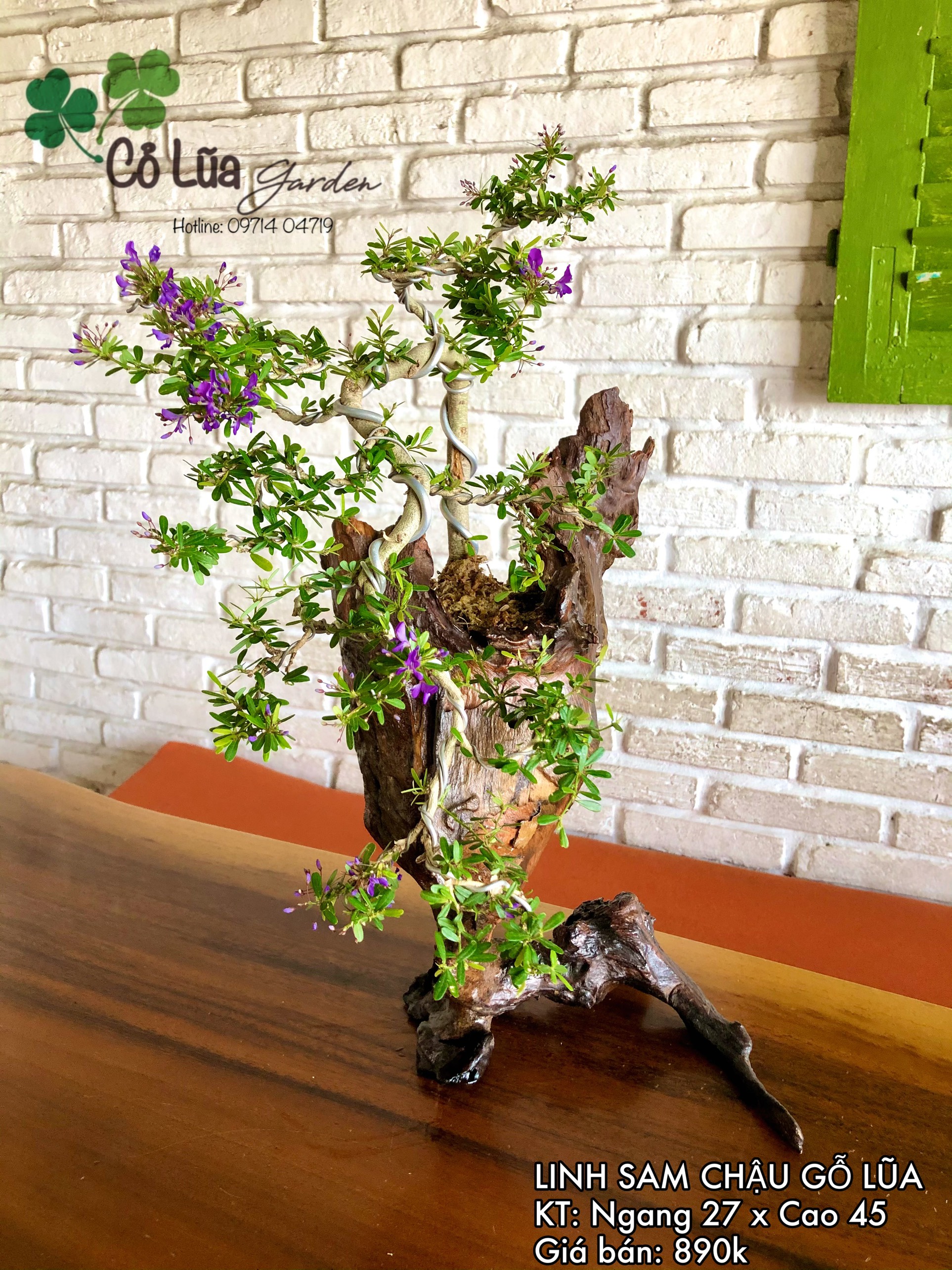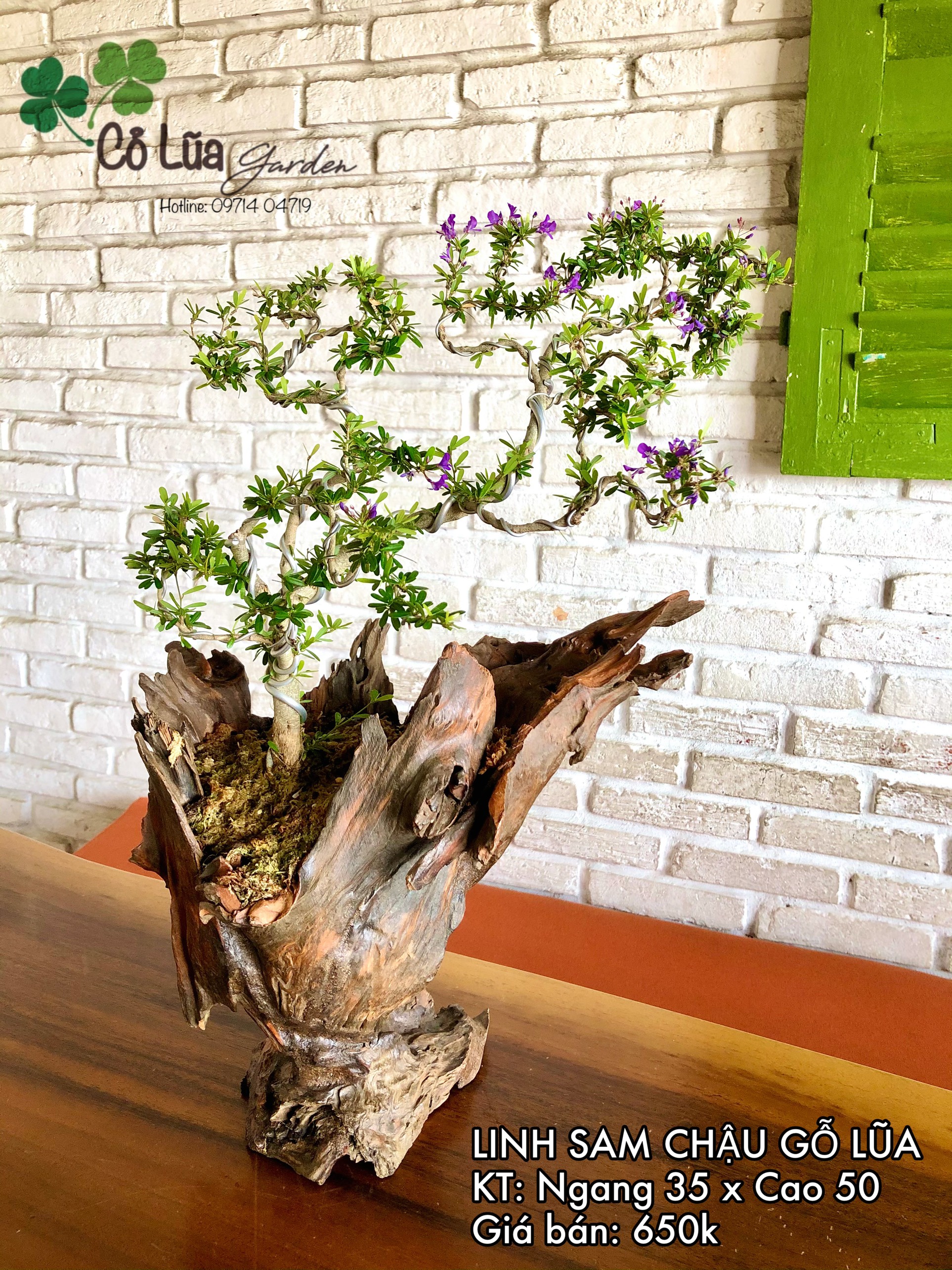 Cây để bàn trồng trên gỗ lũa