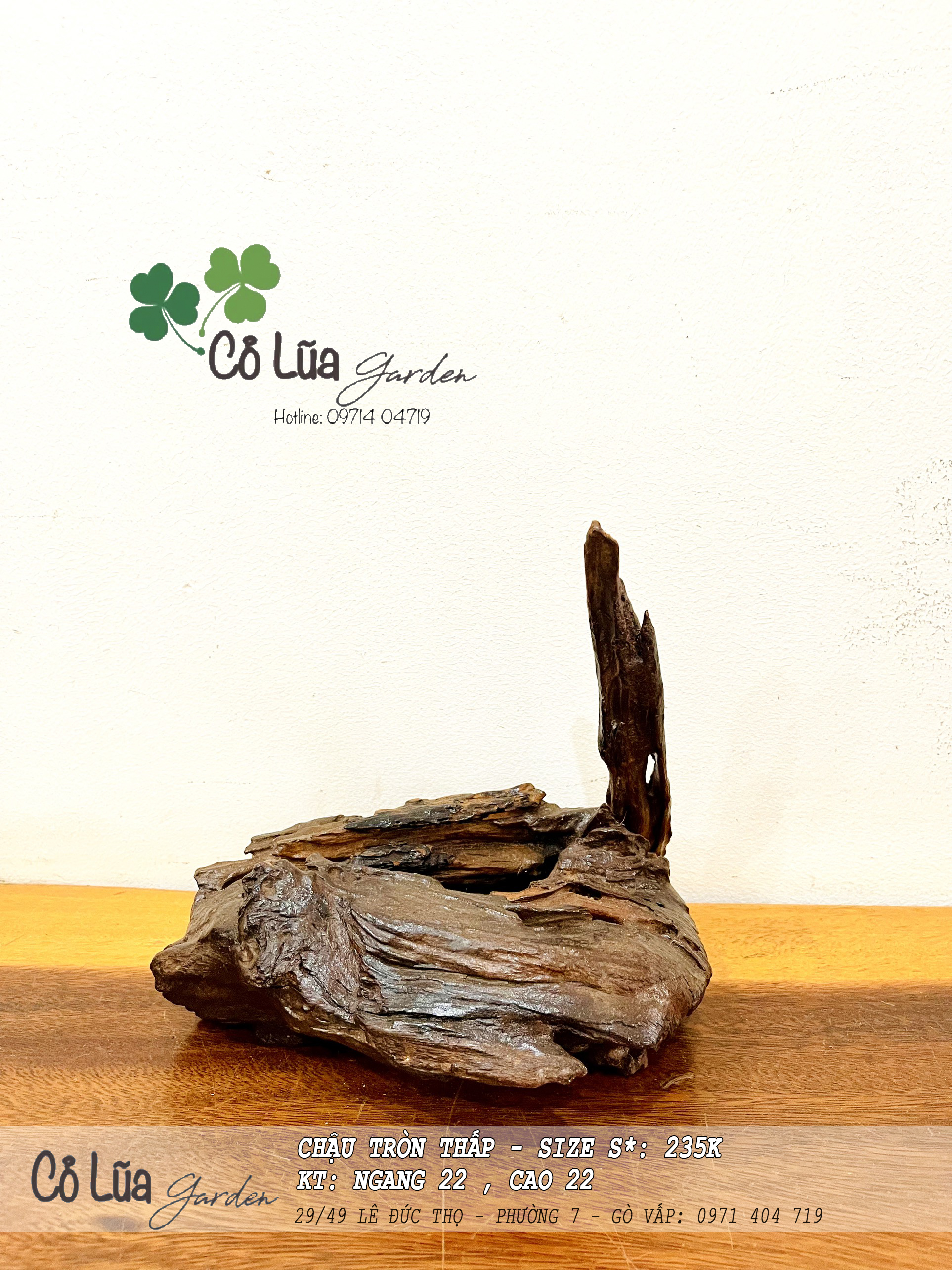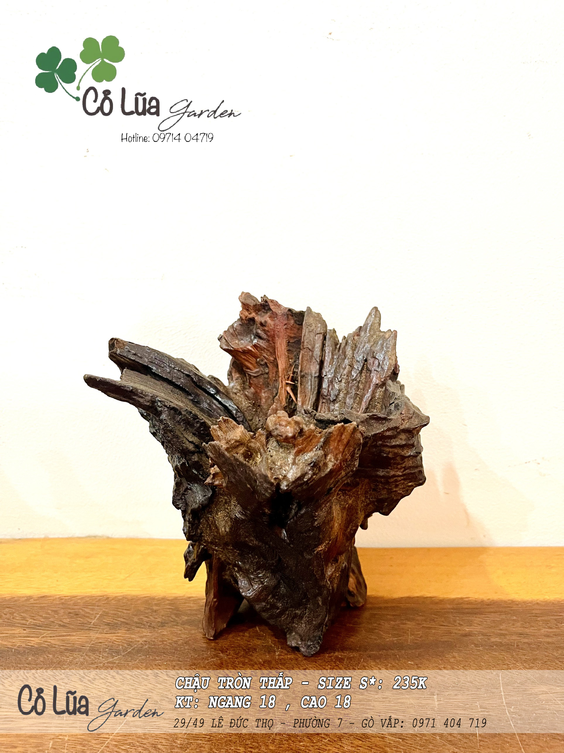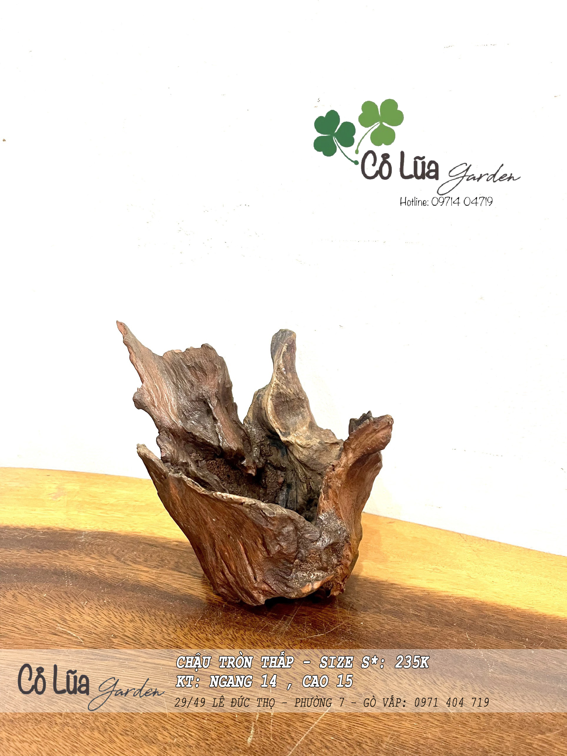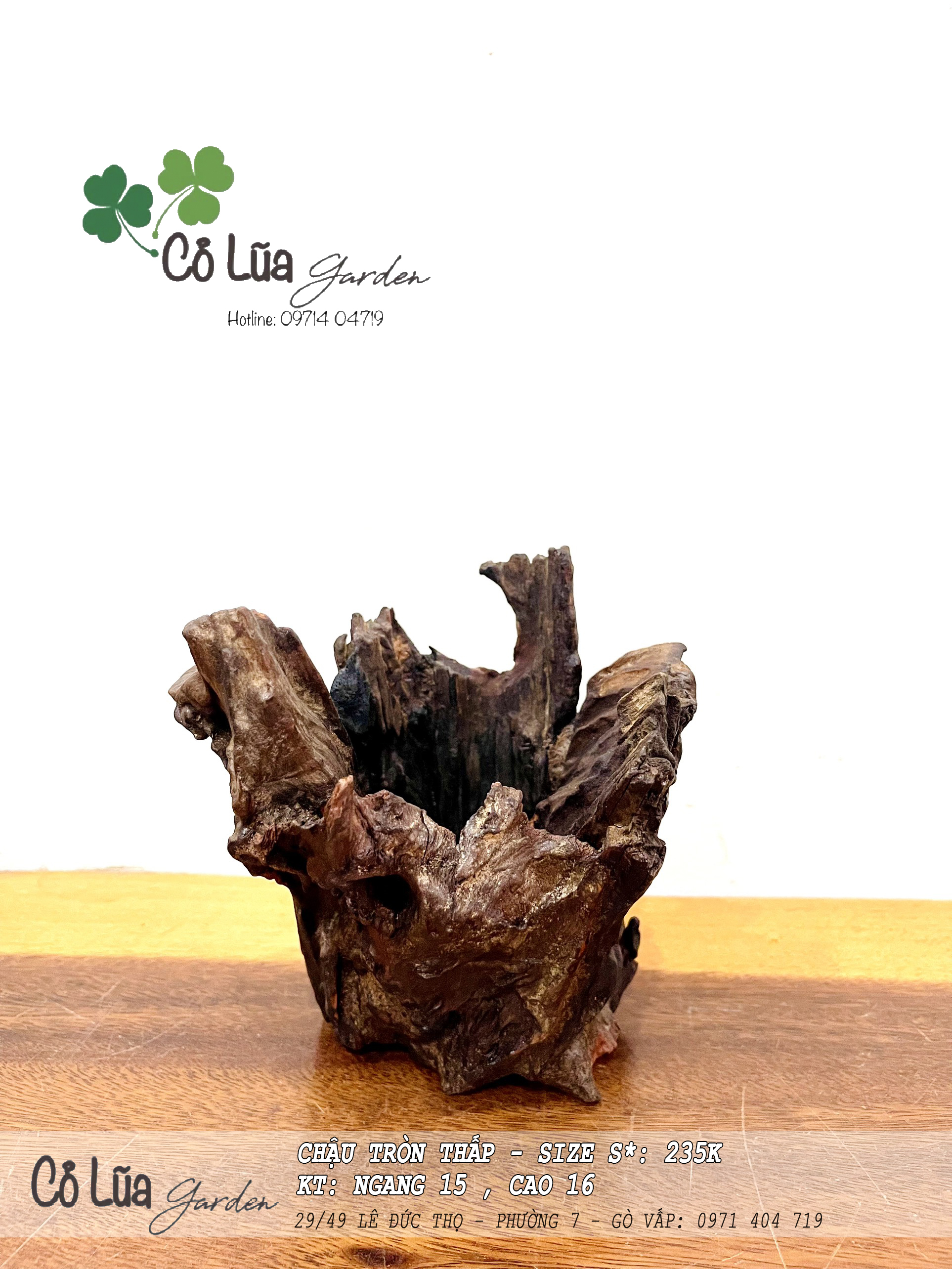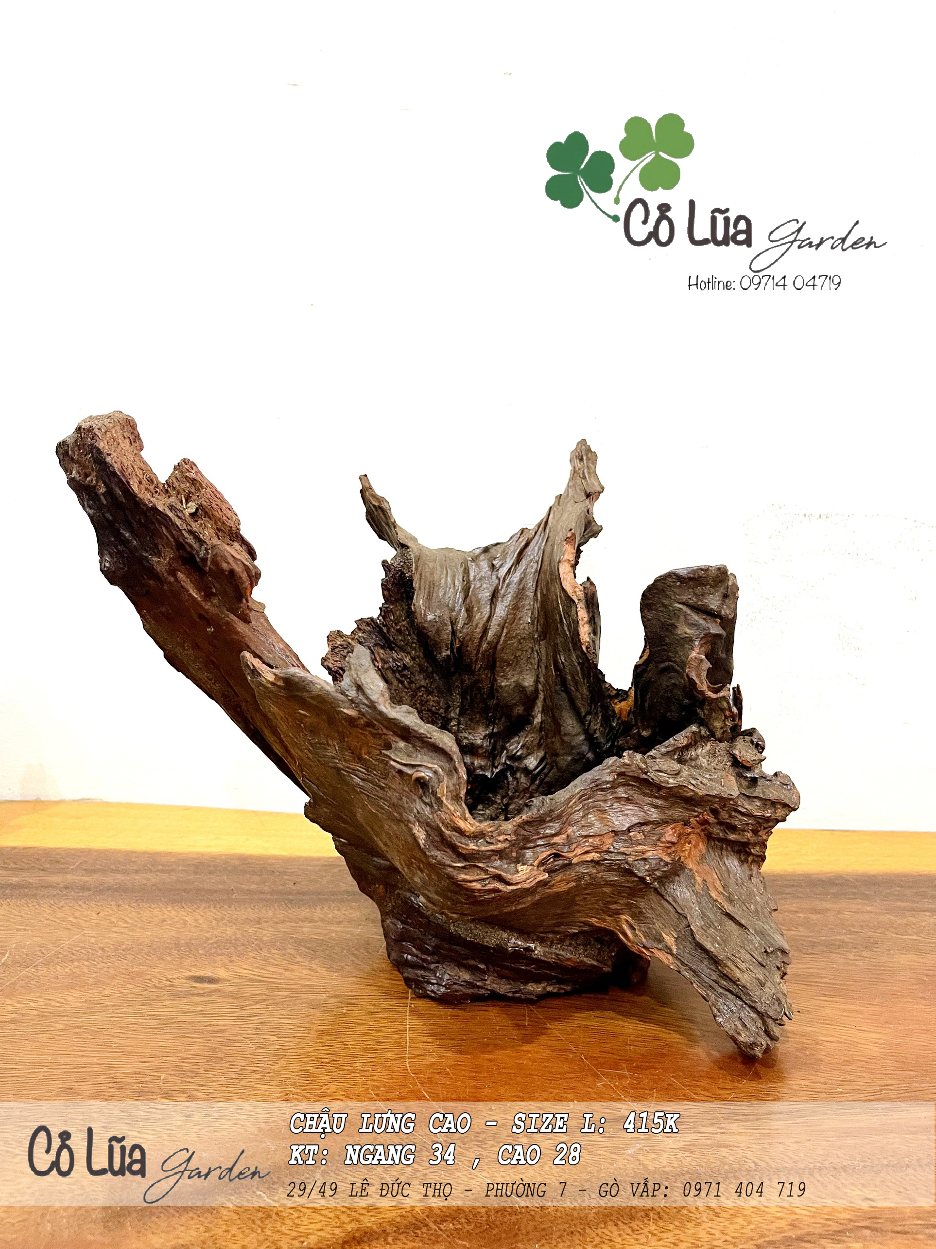 CHẬU TRỒNG CÂY BẰNG GỖ LŨA - Chất liệu: gỗ lũa tự nhiên đã xử lý thấm, mốc - Hình dáng: như hình - Kích thước: xem trên hình - Thích hợp trồng sen đá, phong lan, các loại cây hoa kiểng mini, cắm hoa tươi, hoa khô,…