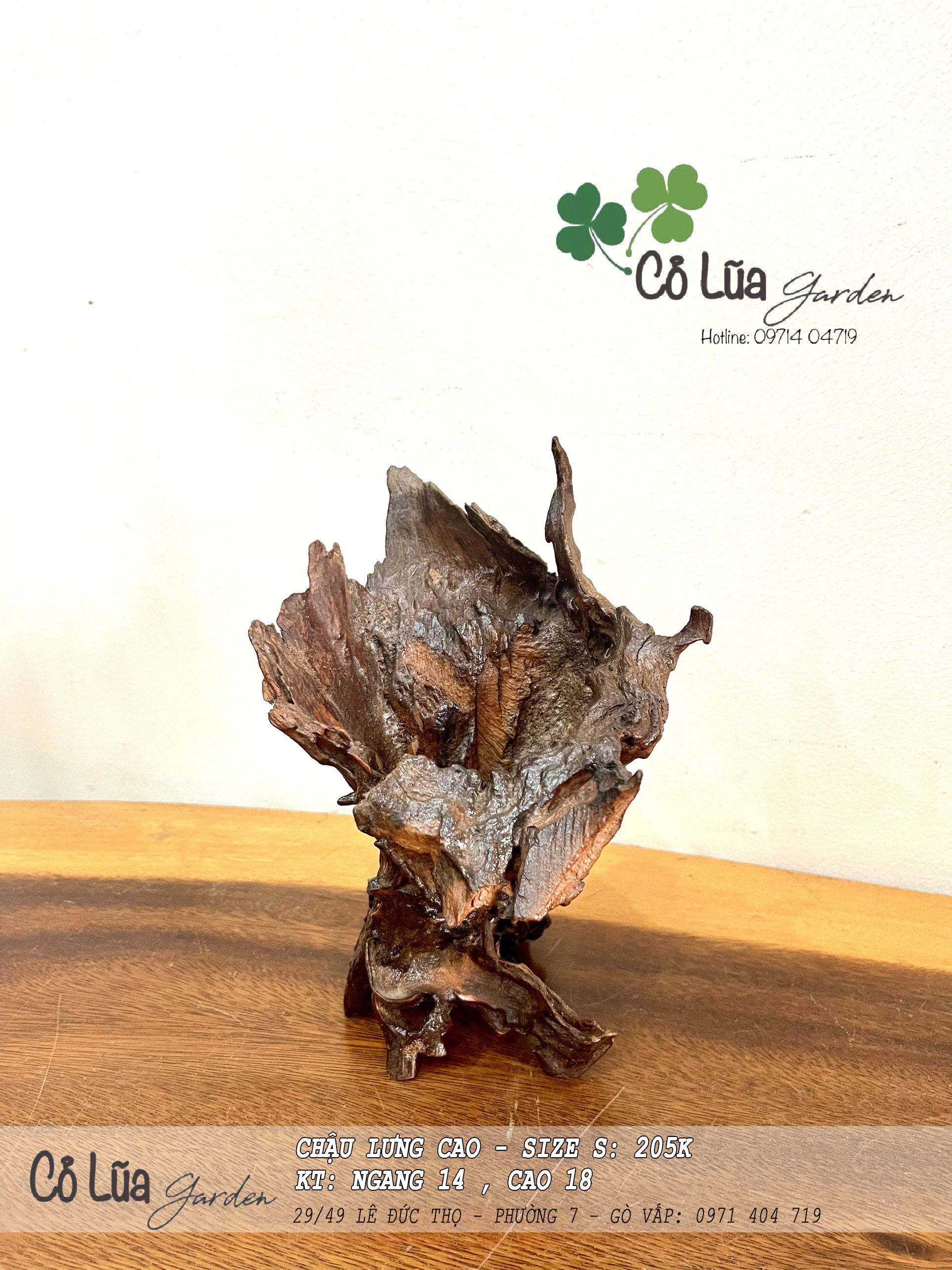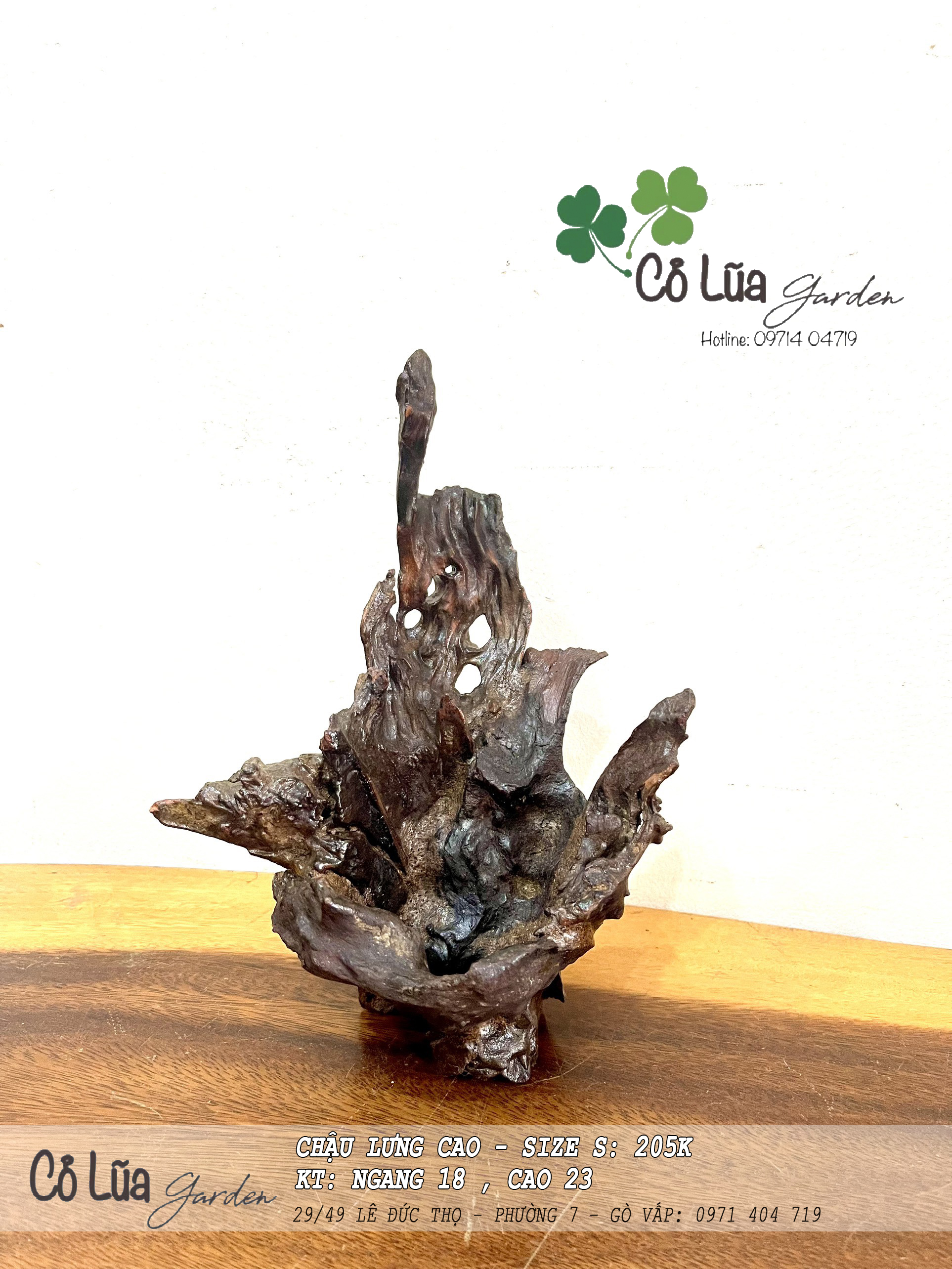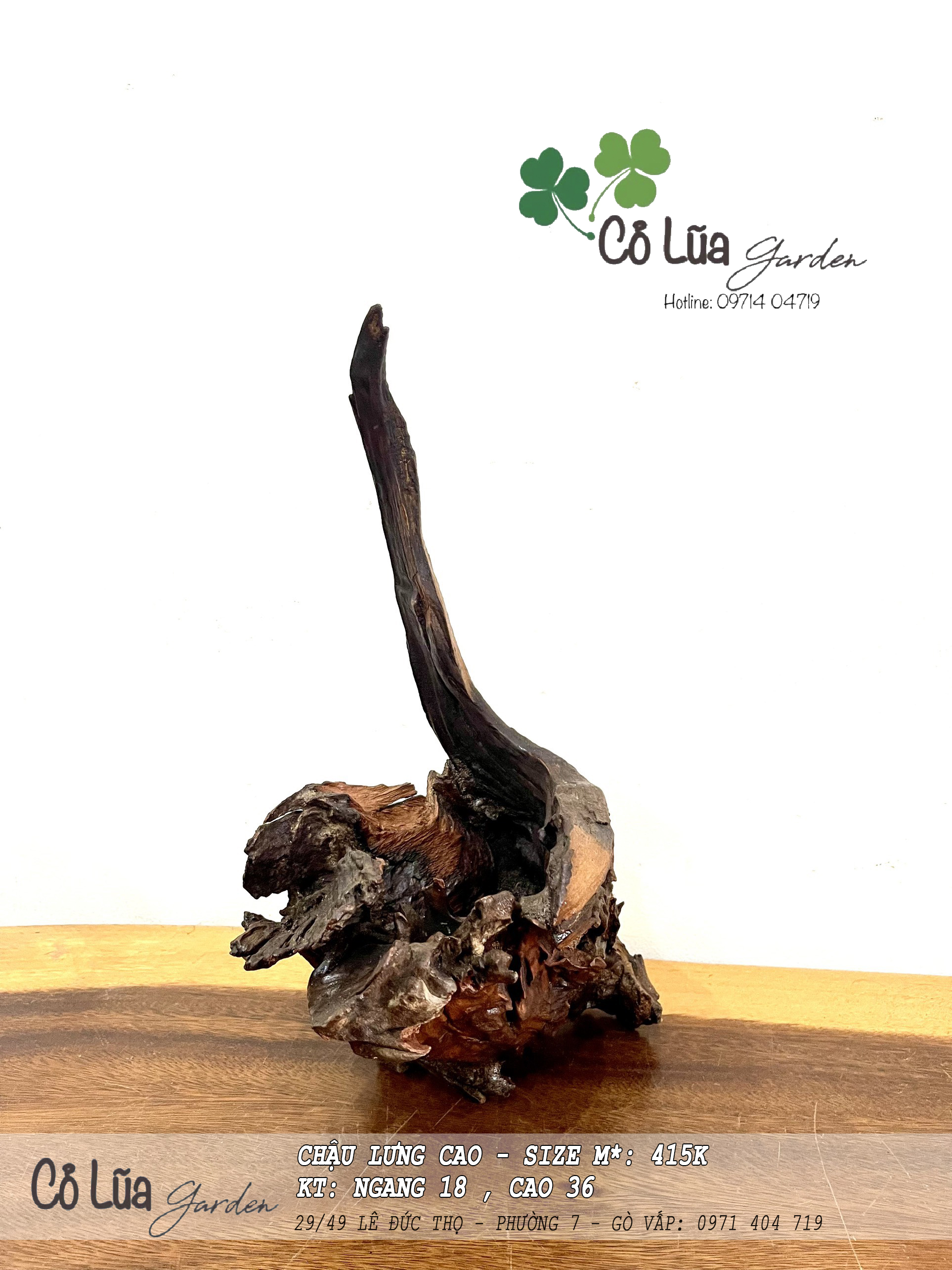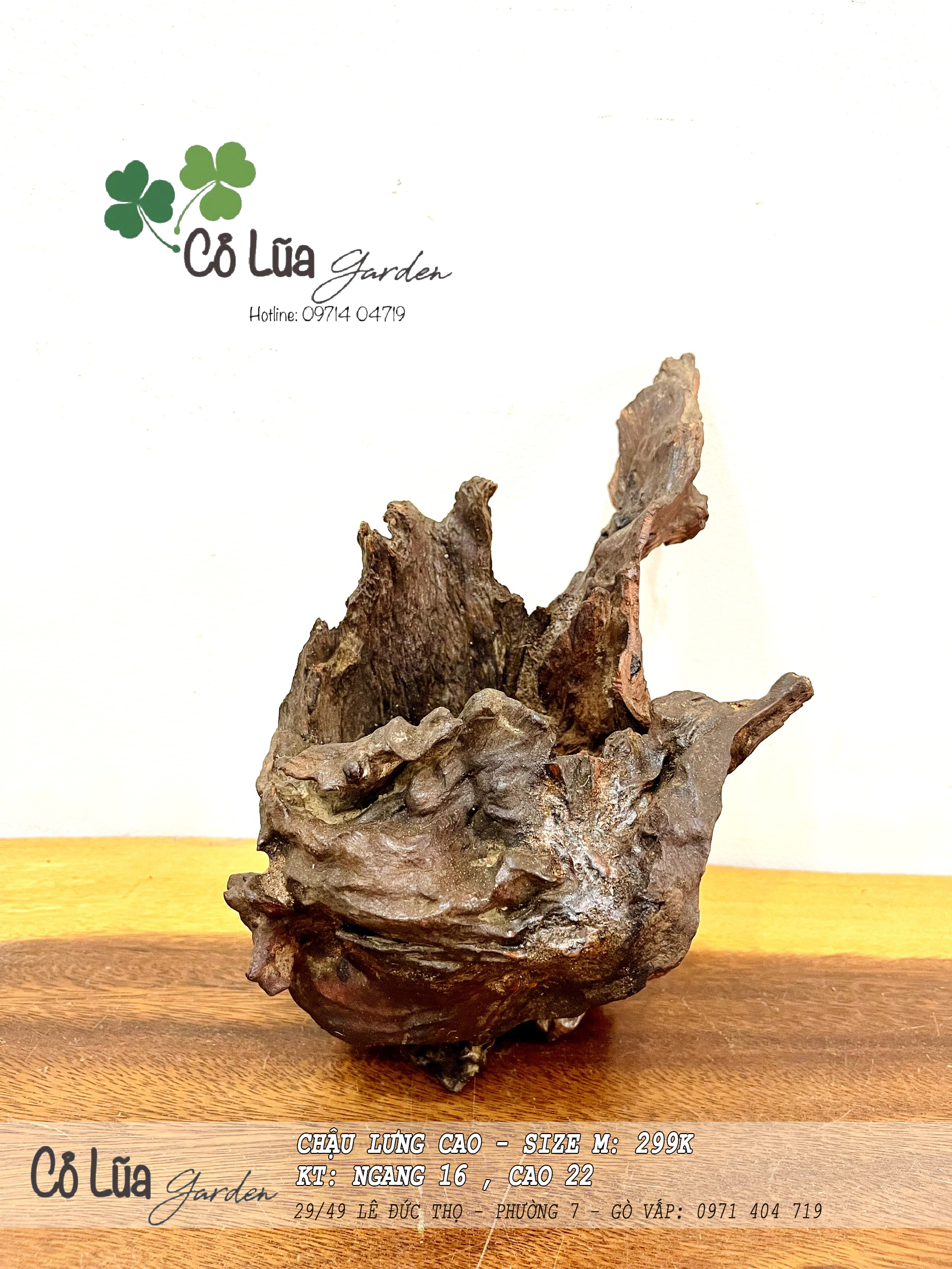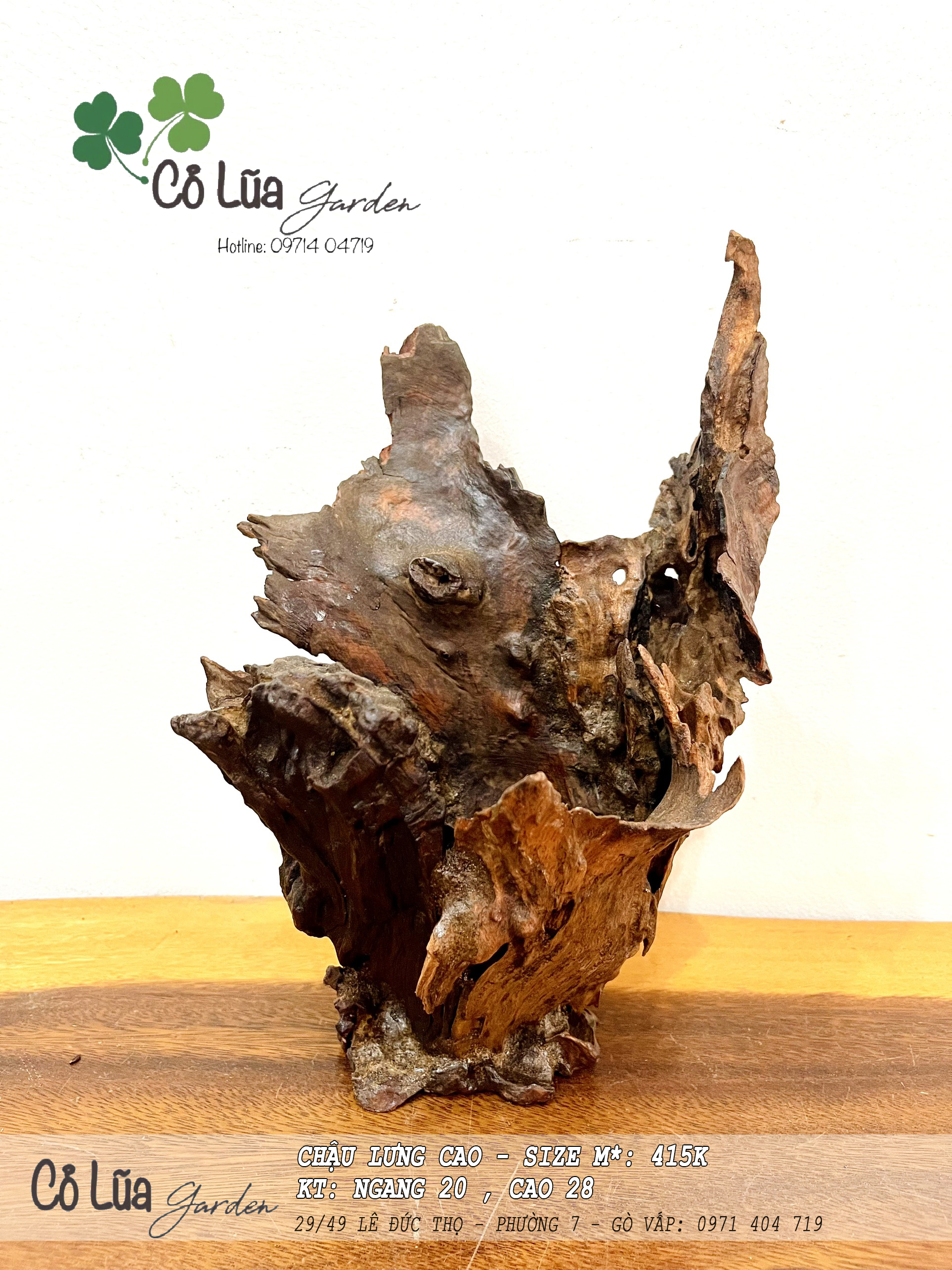 CHẬU TRỒNG CÂY BẰNG GỖ LŨA - Chất liệu: gỗ lũa tự nhiên đã xử lý thấm, mốc - Hình dáng: như hình - Kích thước: xem trên hình - Thích hợp trồng sen đá, phong lan, các loại cây hoa kiểng mini, cắm hoa tươi, hoa khô,…