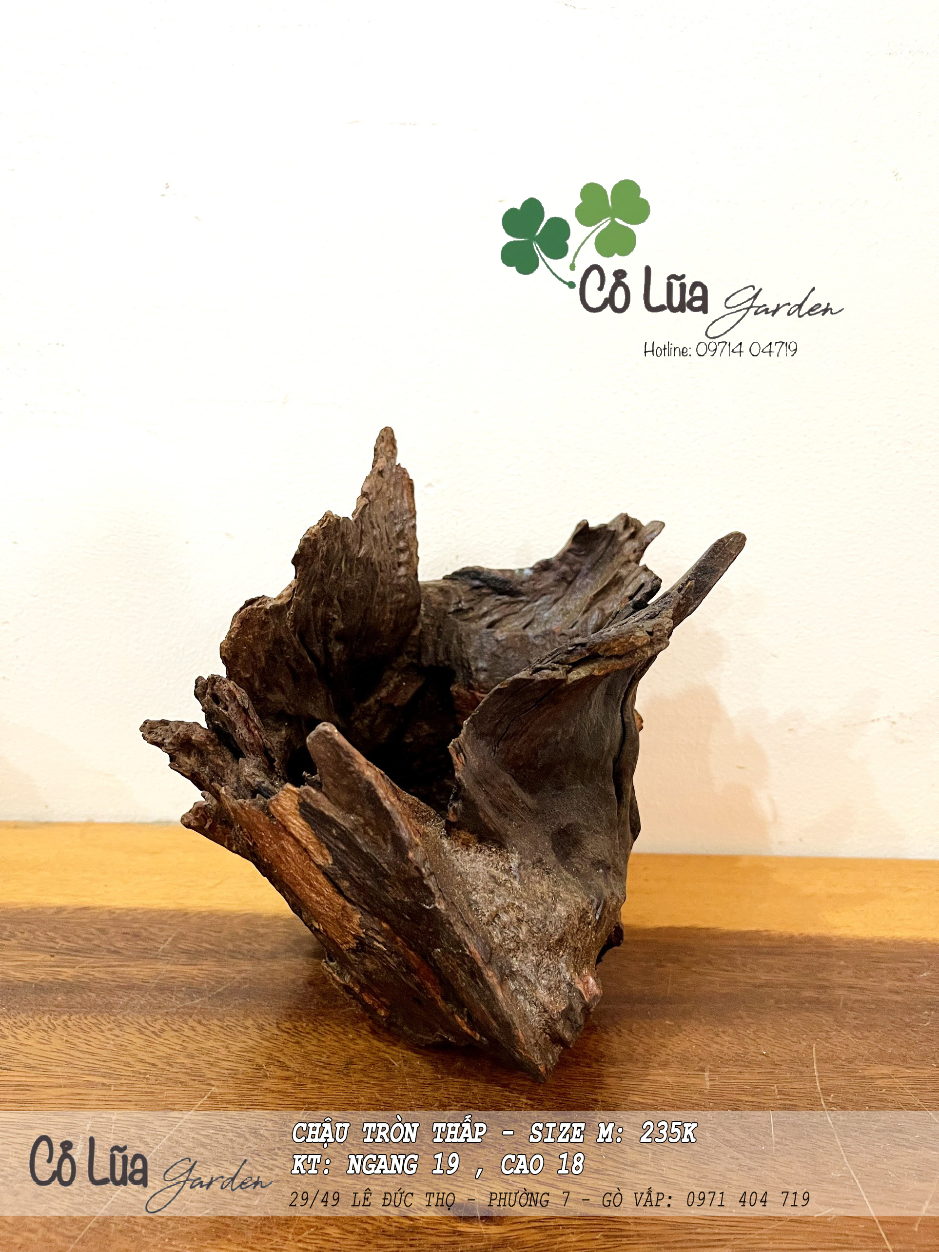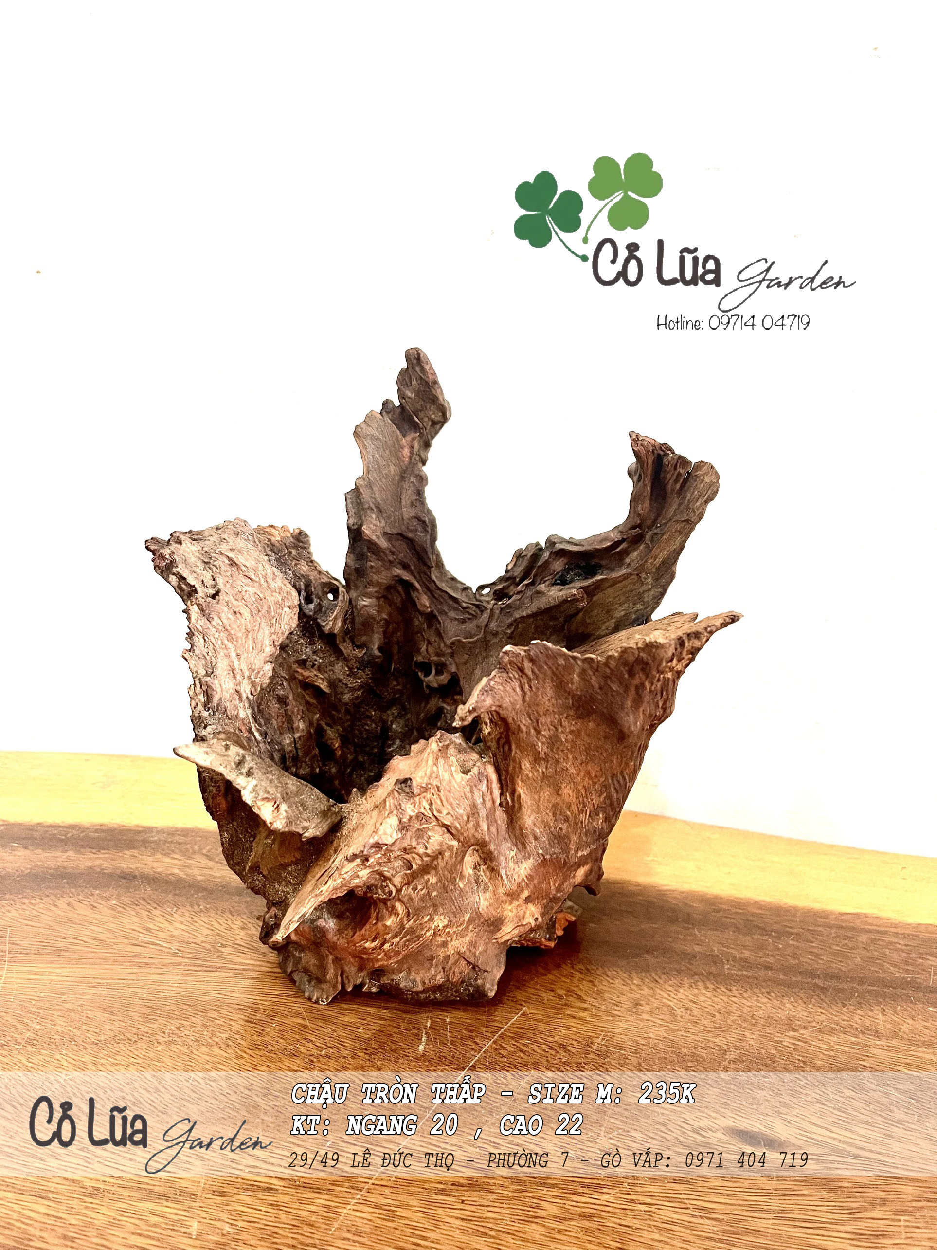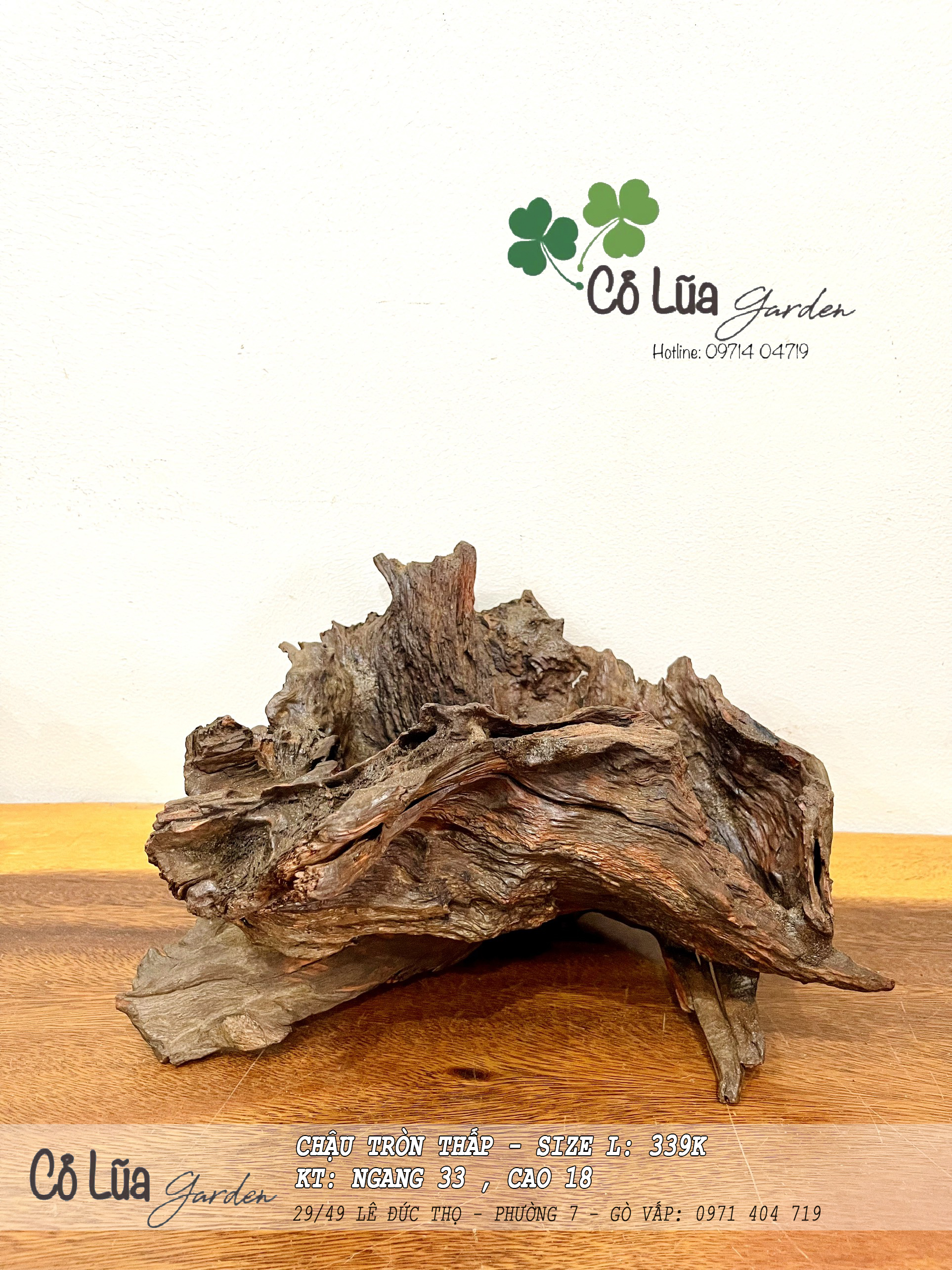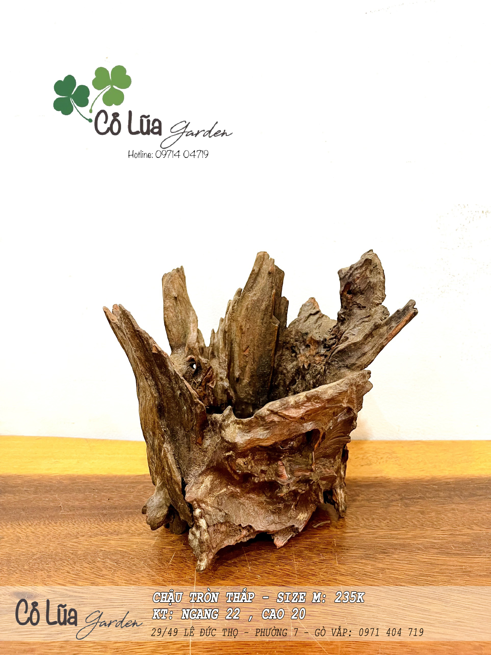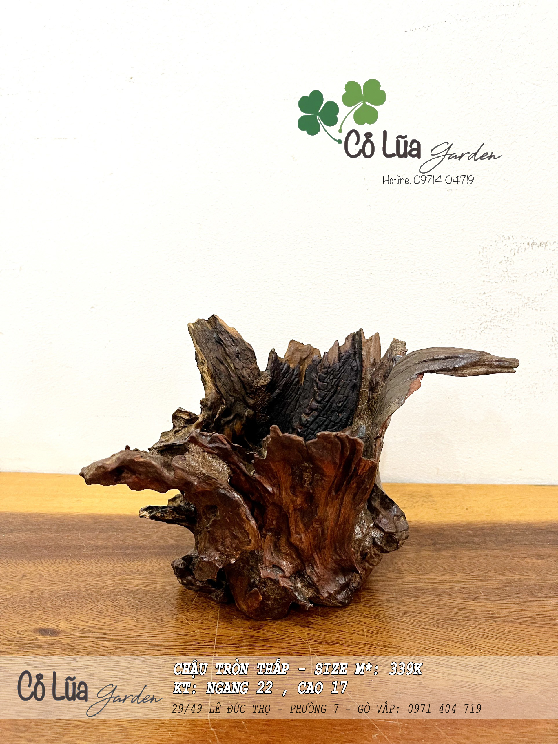 CHẬU TRỒNG CÂY BẰNG GỖ LŨA - Chất liệu: gỗ lũa tự nhiên đã xử lý thấm, mốc - Hình dáng: như hình - Kích thước: xem trên hình - Thích hợp trồng sen đá, phong lan, các loại cây hoa kiểng mini, cắm hoa tươi, hoa khô,…