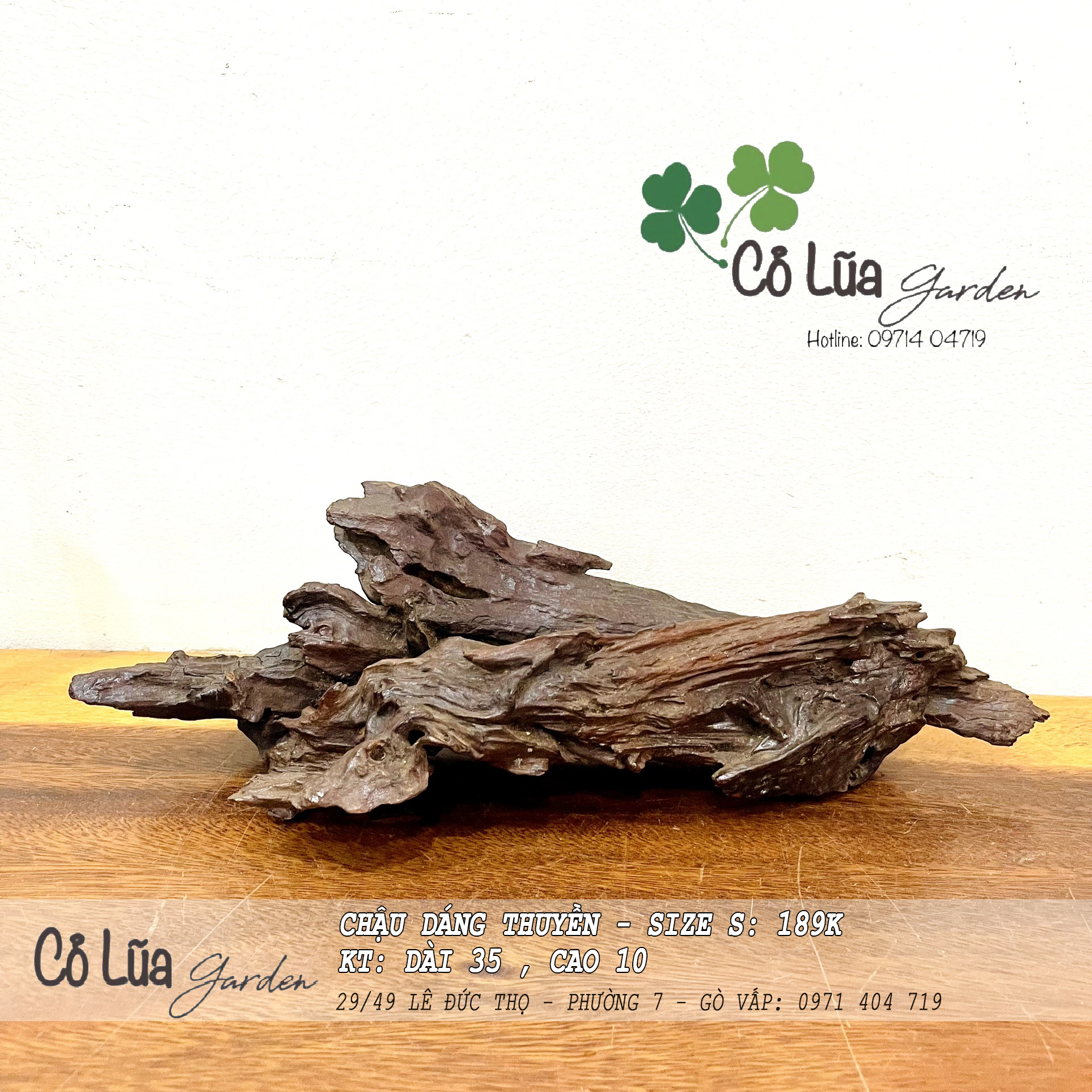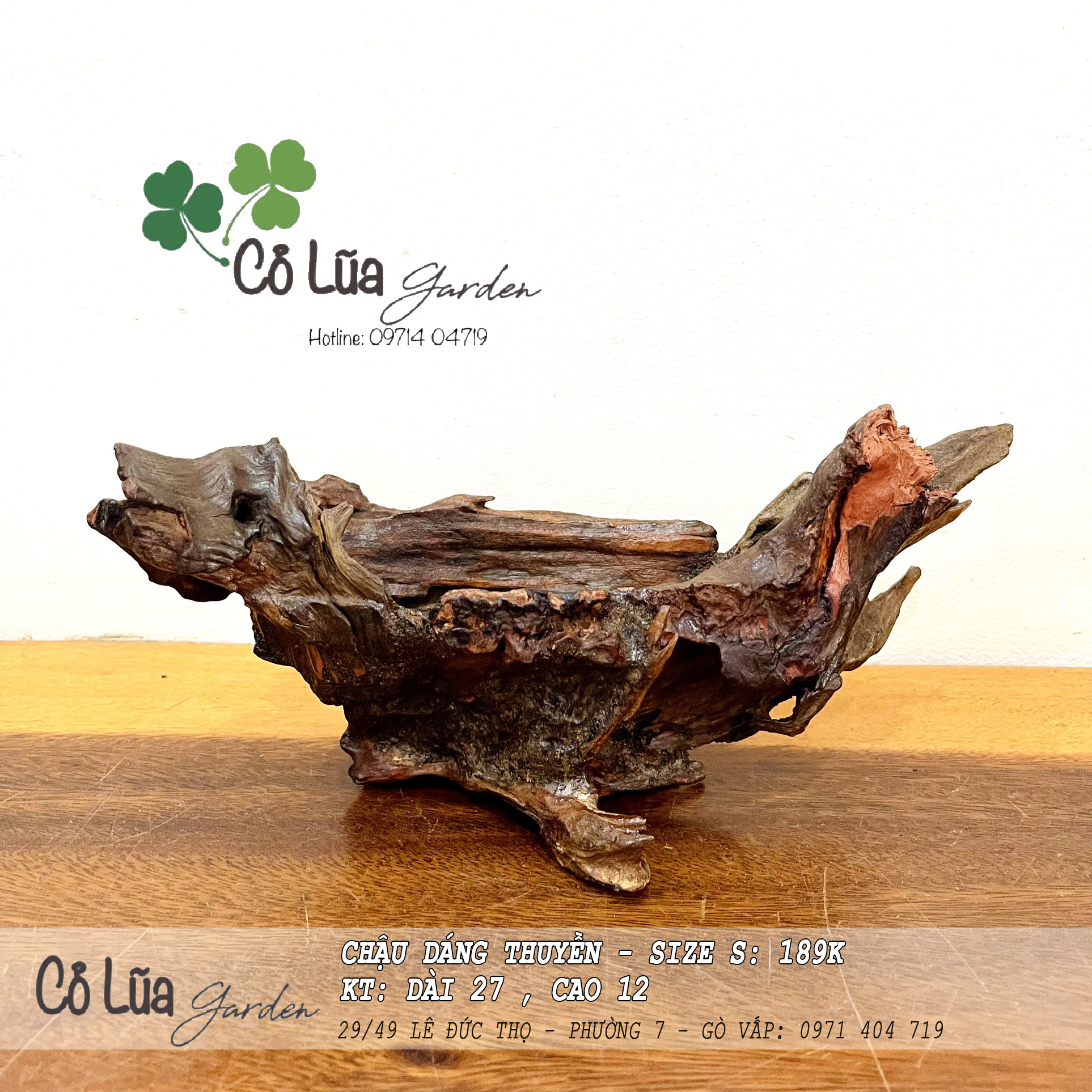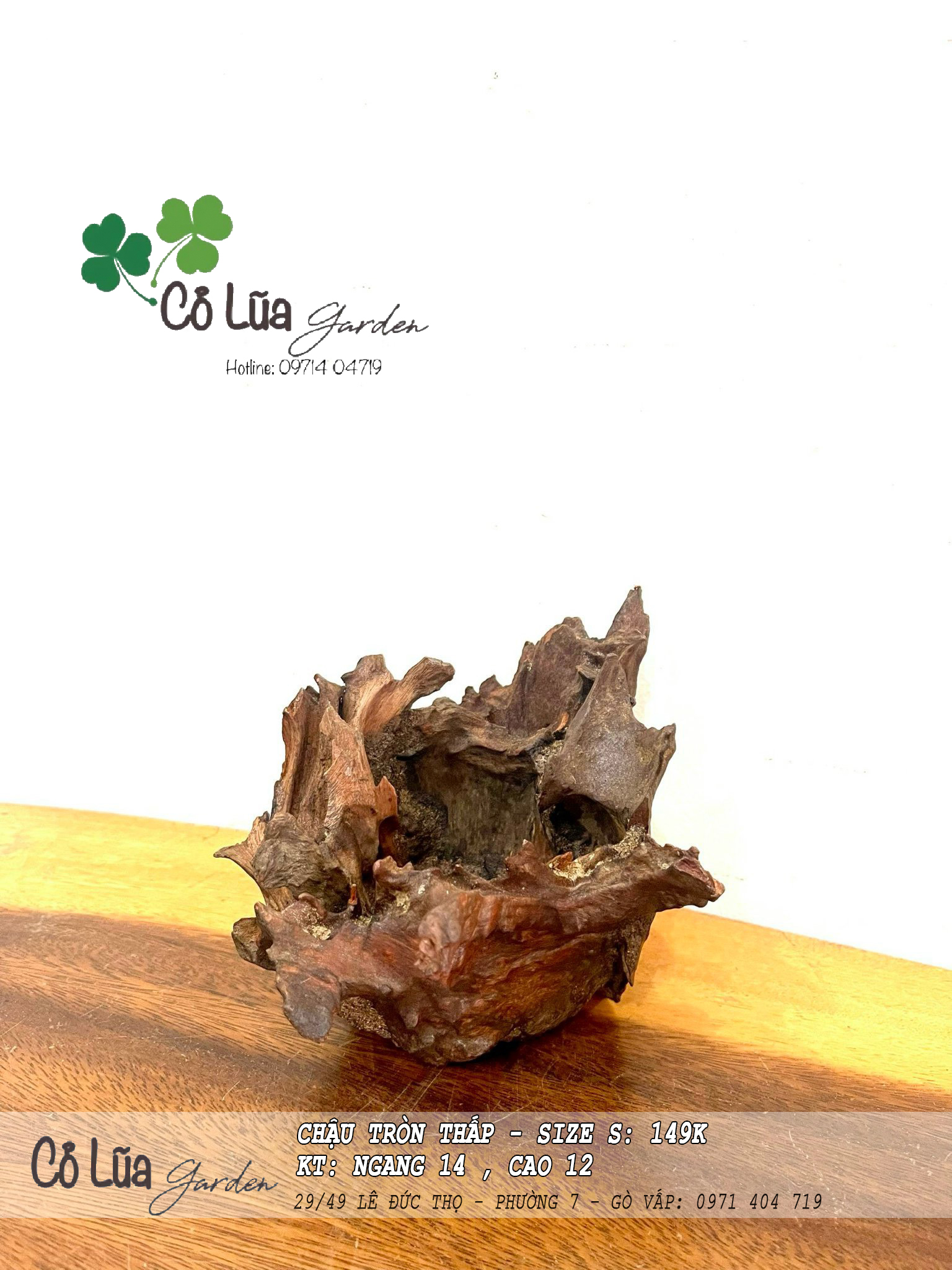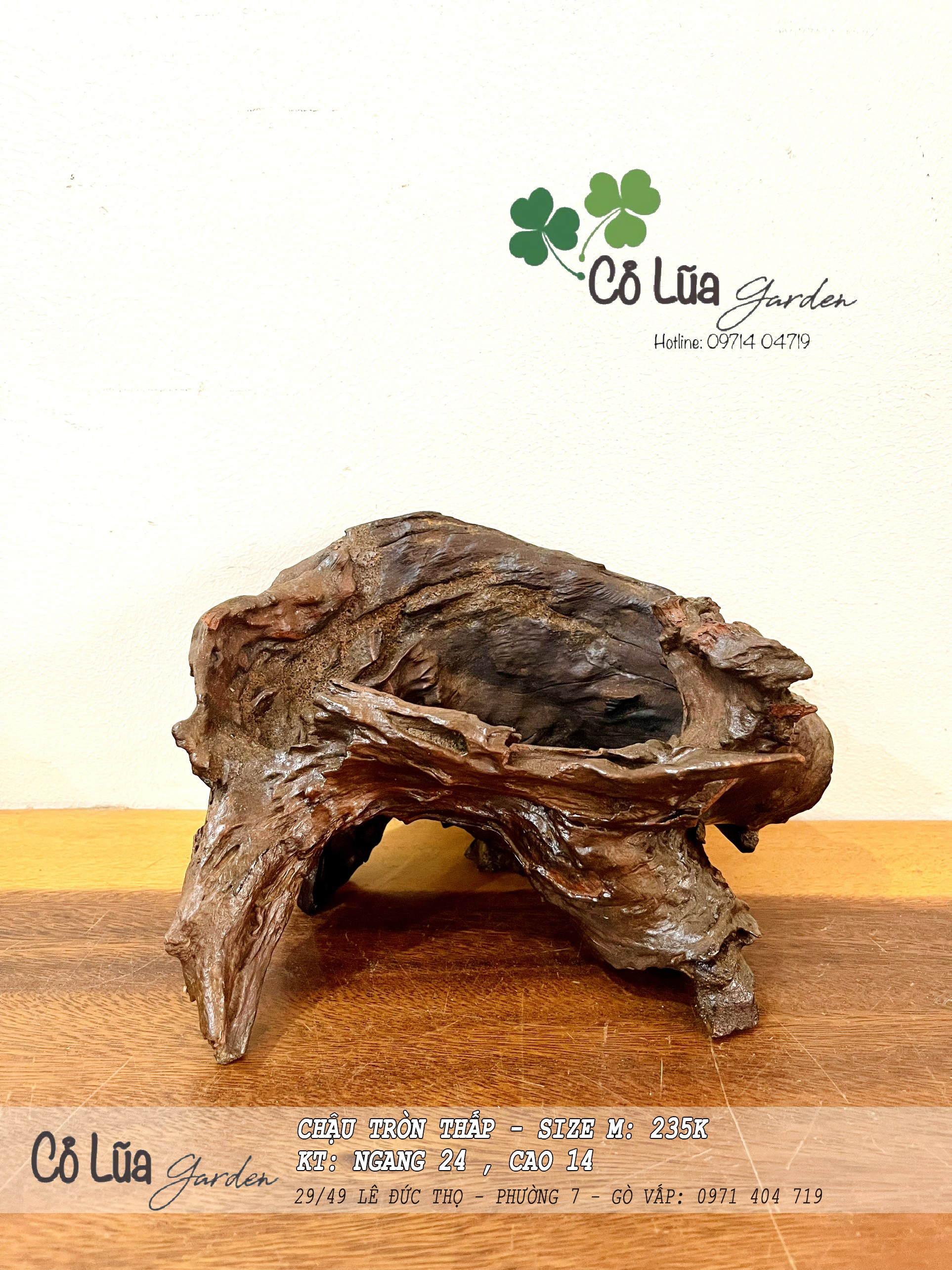 CHẬU TRỒNG CÂY BẰNG GỖ LŨA - Chất liệu: gỗ lũa tự nhiên đã xử lý thấm, mốc - Hình dáng: như hình - Kích thước: xem trên hình - Thích hợp trồng sen đá, phong lan, các loại cây hoa kiểng mini, cắm hoa tươi, hoa khô,…
