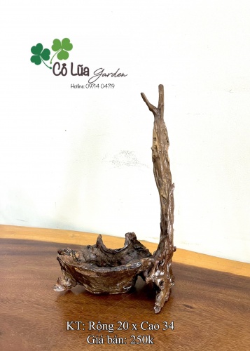 Chậu trồng cây làm bằng gỗ lũa tự nhiên đã xử lý thấm, mốc.Thích hợp trồng các loại cây hoa kiểng mini, cắm hoa tươi, hoa khô, phong lan, sen đá,….Kích thước tham khảo trên hình.