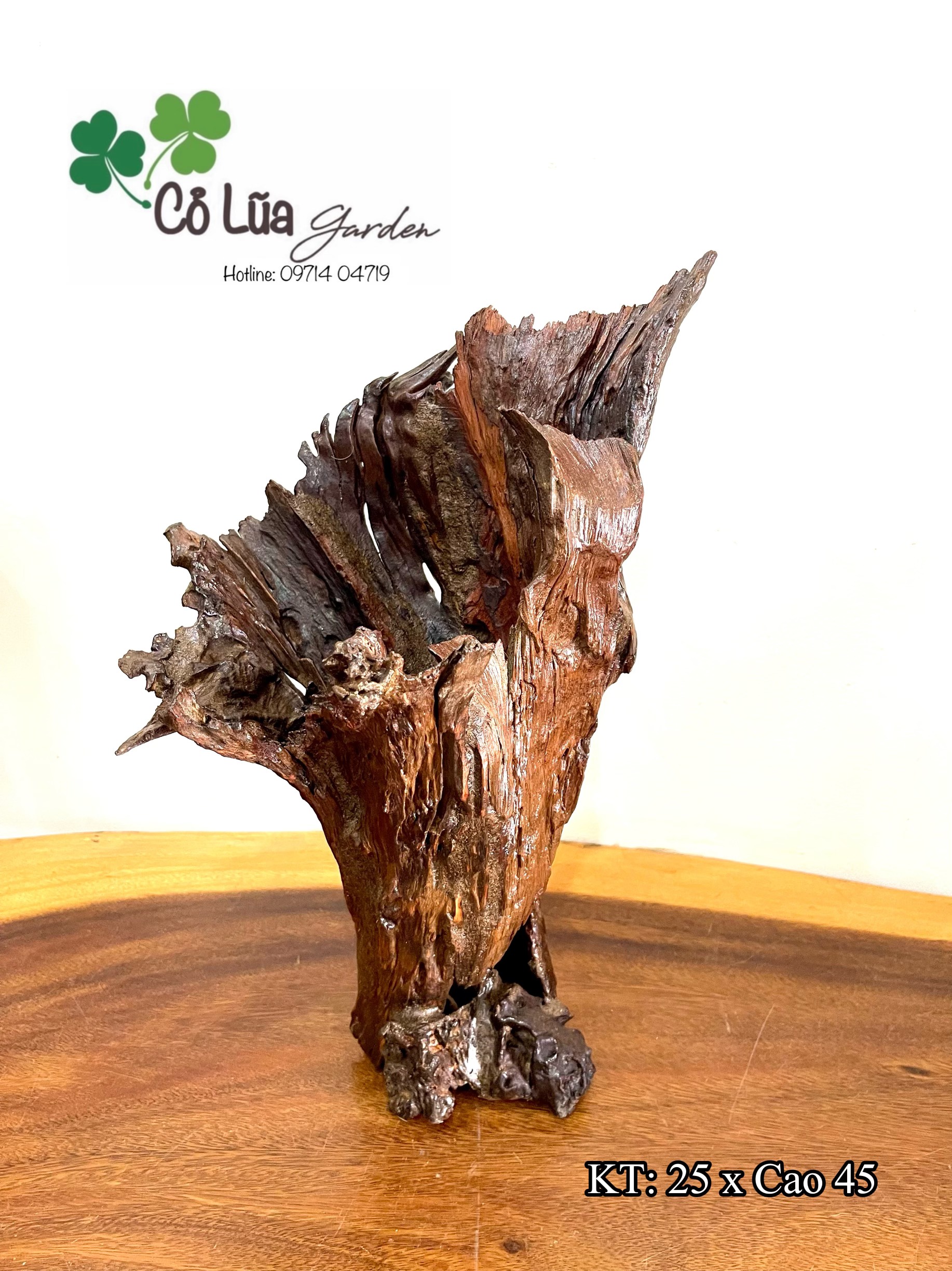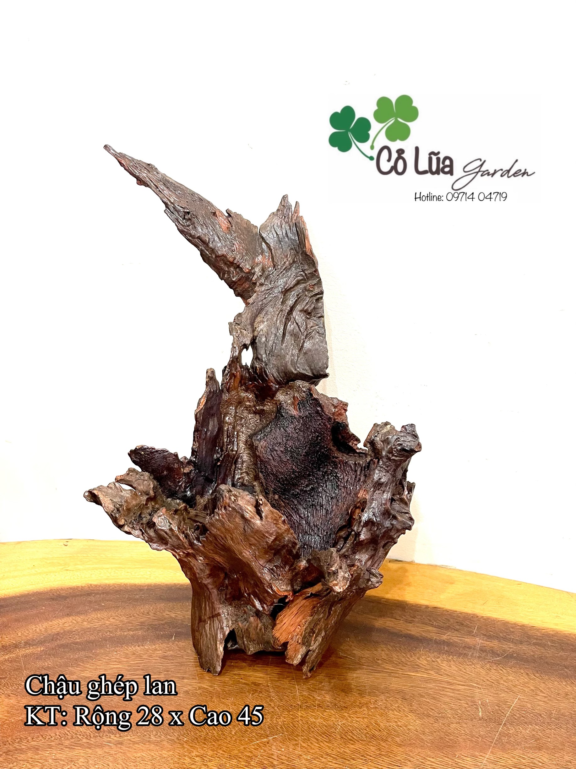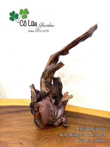 Chậu trồng cây làm bằng gỗ lũa tự nhiên đã xử lý thấm, mốc.Thích hợp trồng các loại cây hoa kiểng mini, cắm hoa tươi, hoa khô, phong lan, sen đá,….Kích thước tham khảo trên hình.